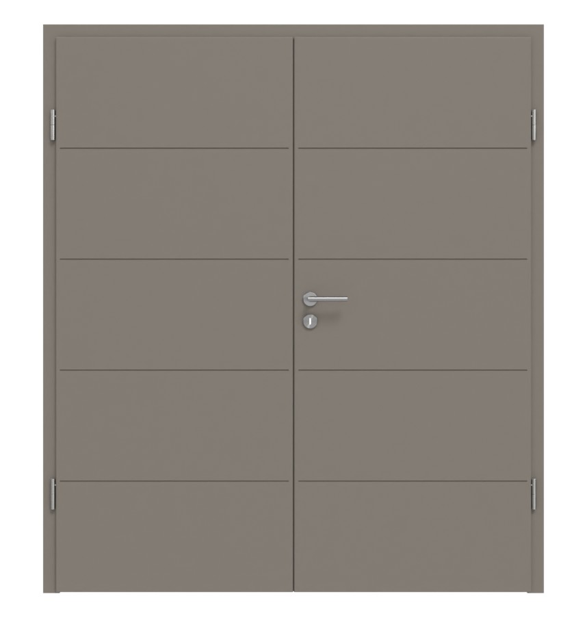 Atrakcyjna podwójna drzwi w kolorze taupe RAL 7048 o łatwej w pielęgnacji charakterystyce: