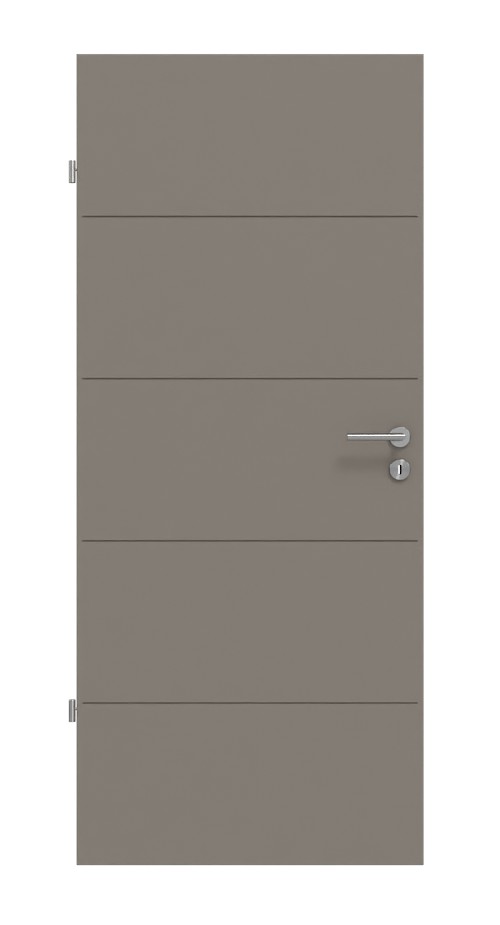 Stylowy wygląd drzwi: Drzwi wewnętrzne Groove 27 w kolorze taupe RAL 7048 firmy Hörmann wyróżniają się eleganckim designem dzięki ekskluzywnemu lakierowaniu.
