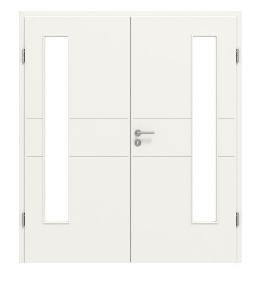HÖRMANN drzwi dwuskrzydłowe Groove 29 biały lakier DesignLine z przeszkleniem LA 24 po stronie zawiasowej i ościeżnicą