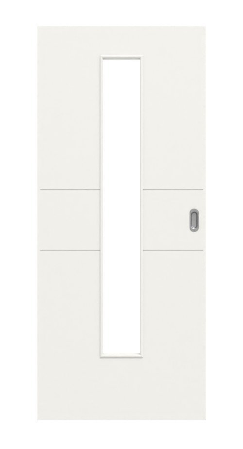Najwyższej jakości biała lakierowana powierzchnia zapewnia olśniewający blask. W środku skrzydła drzwi znajduje się wydłużony otwór szklany, który generuje otwartość w Twoim domu. Obie poziome szczeliny w pobliżu zamka nadają modelowi indywidualny charakter.