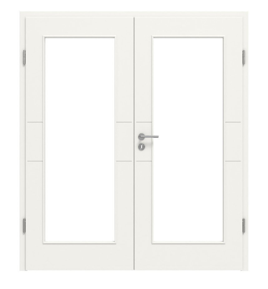HÖRMANN drzwi dwuskrzydłowe Groove 29 biały lakier DesignLine z przeszkleniem LA 8 i ościeżnicą