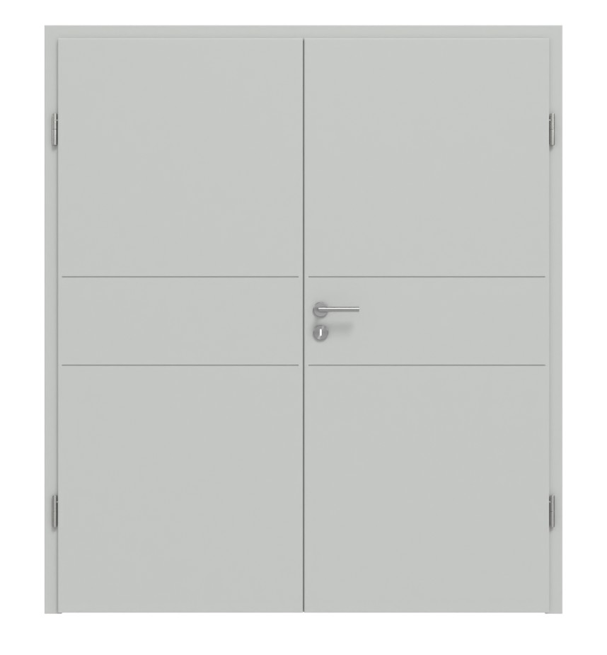 Szeroki dostęp do pomieszczeń: Dzięki trwałym właściwościom drzwi dwuskrzydłowe Groove 29 w kolorze szarym RAL 7035 firmy Hörmann będą służyć Ci przez długi czas.
