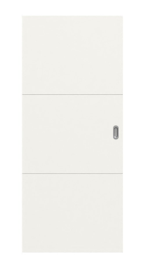 W skrzydle drzwi wyfrezowano dwie poziome szczeliny. Zapewniają one ekskluzywny wzór. Na powierzchni nałożona jest biała lakierowana powłoka.