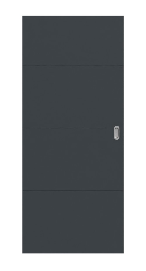 Elegancki wygląd, wygodna obsługa: Drzwi przesuwne Groove 34 w kolorze szarym antracytowym firmy Hörmann gwarantują więcej wolnej przestrzeni w Twoich pomieszczeniach.