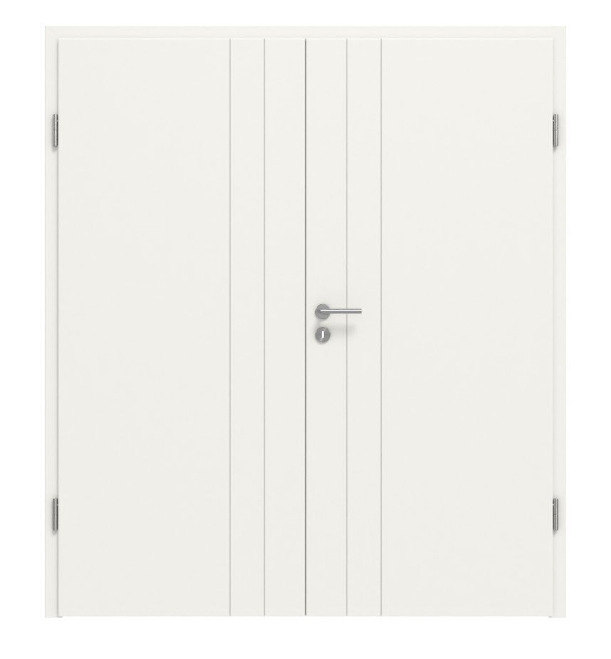 Dzięki płycie wiórowej w wnętrzu skrzydła drzwiowego mechaniczne oddziaływania nie mają wpływu na oba skrzydła drzwi. Drzwi podwójne są dostępne z okrągłym lub prostokątnym kształtem krawędzi.