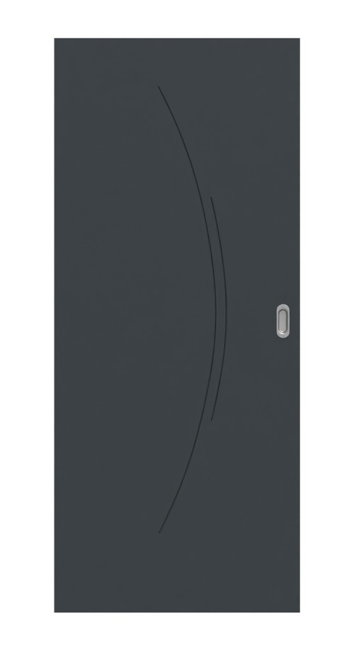 Dwie zakrzywione fugiwyfrezowane pośrodku skrzydła drzwiowego nadają modelowi indywidualny i estetyczny wygląd. Lakier w kolorze antracytowym podkreśla ekskluzyjne wykończenie wizualne.