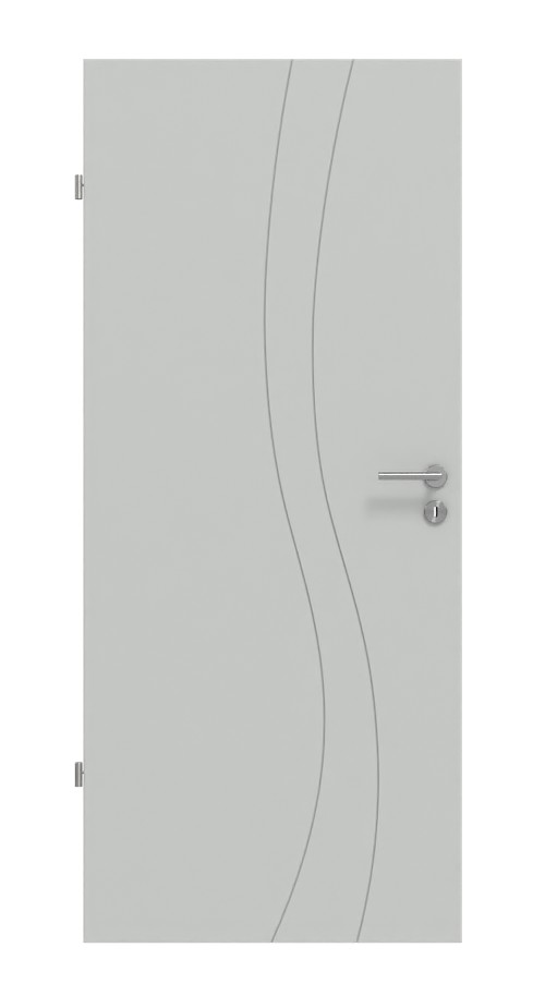 Dzięki estetycznemu szaremu lakierowi powstaje ekskluzywny design, który pasuje do każdego wnętrza. Na całej długości drzwi biegną dwie zakrzywione fugi pośrodku skrzydła drzwiowego.