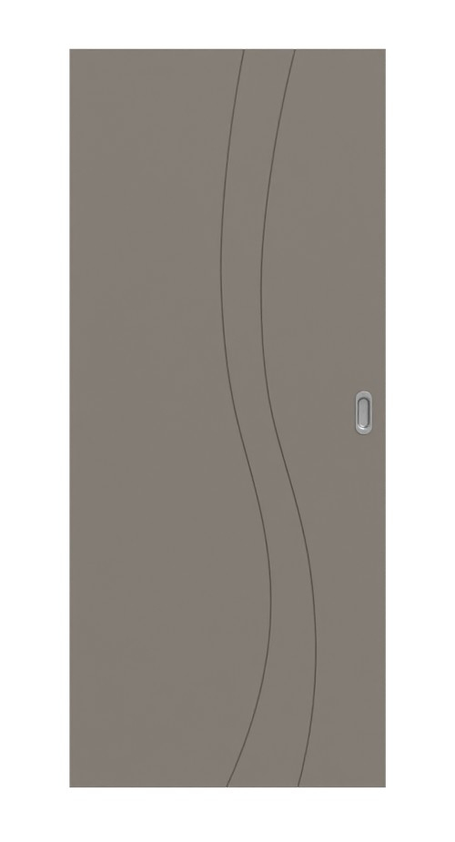 Konsystentny model drzwi przesuwnych w kolorze taupe RAL 7048 z owalnym uchwytem: