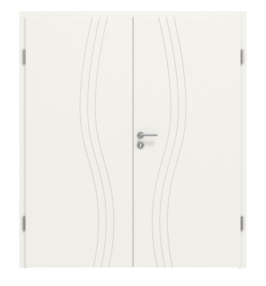 Dzięki płycie wiórowej w rdzeniu obu skrzydeł drzwi, skrzydła pozostają stabilne nawet przy mechanicznym obciążeniu. Oprócz modeli z zaokrąglonymi krawędziami dostępne są również drzwi podwójne z kątami prostymi.