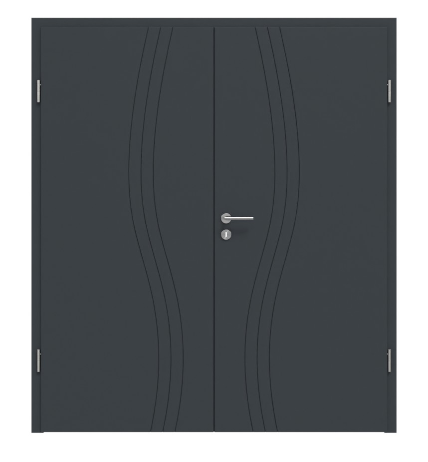 Estetyczne drzwi podwójne w kolorze antracytowym RAL 7016 o łatwej do czyszczenia powierzchni: