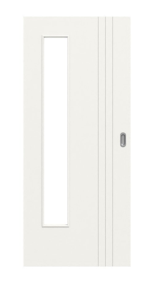 Trwałe drzwi przesuwne w białym lakierze z owalnym uchwytem: