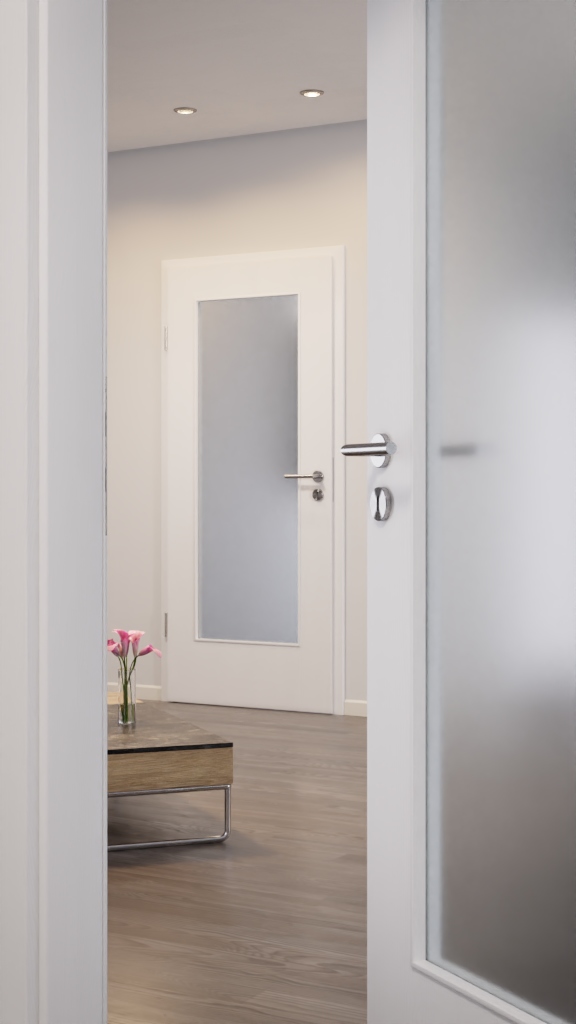 Otwór świetlny tych drzwi zapewnia wrażenie otwartej przestrzeni mieszkalnej . Do wyboru klasyczne szkło przezroczyste lub inna modna odmiana szkła. Stabilność zapewnia ramiak z twardego drewna, umieszczony wewnątrz skrzydła.