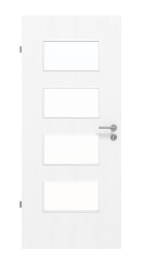 Wdzięk drewnianych drzwi z otworem świetlnym: Szklana wkładka i solidne wykonanie łączą się w drzwiach wewnętrznych w kolorze jesion aksamitny biały firmy Jeld-Wen.