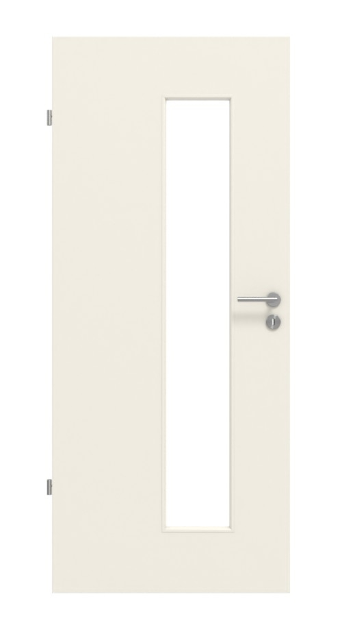 Prosty design białego lakieru od Jeld-Wen: Model drzwi Satura 1605 LÖ 50 stawia na zrównoważone, przezroczyste struktury.