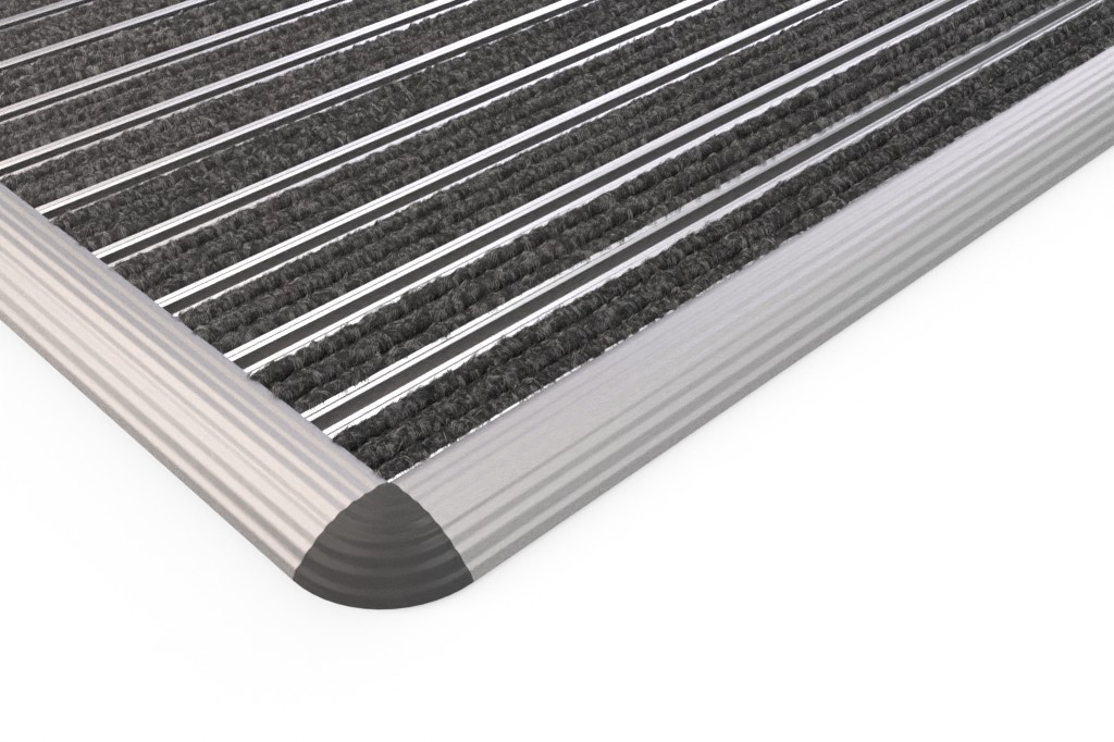 Profile aluminiowe otoczone są spłaszczonym ramieniem startowym. Dzięki temu nie ma ryzyka potknięcia, a mata może być używana przez wózki inwalidzkie.