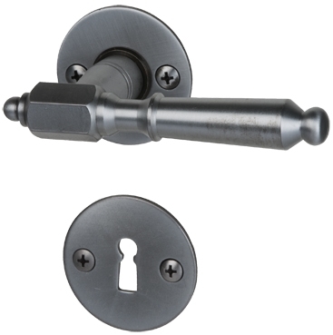 Półzestaw jednostronny z czarnej, satynowanej stali zachwyca żywymi konturami. Ich proste okrągłe rozety stanowią udany kontrast do rustykalnego wyglądu klamki. Dzięki stabilnej konstrukcji stalowej klamka zapewnia wysoką wytrzymałość.