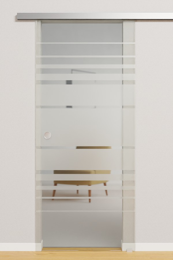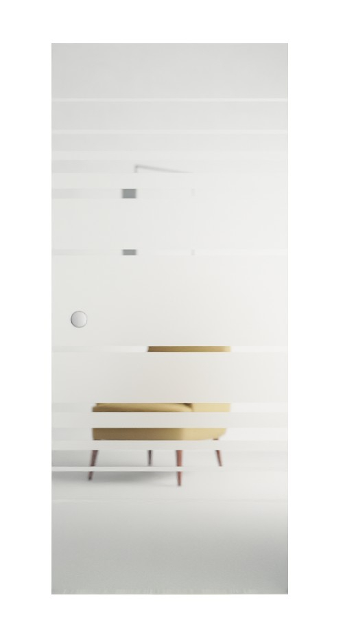 Motyw belek na skrzydle drzwiowym zapewnia elegancję i dodaje charakteru Twojemu wnętrzu. Składa się z satynowanych szerokich poprzeczek zaokrąglonych wokół uchwytu wpuszczanego muszlowego. Tworzą one nieprzezroczyste pola i zwężają się w kierunku górnej i dolnej krawędzi drzwi. W połączeniu z fragmentami szklanymi w górnej i dolnej części skrzydła drzwiowego tworzą harmonijny wzór i grę świateł w pomieszczeniu.