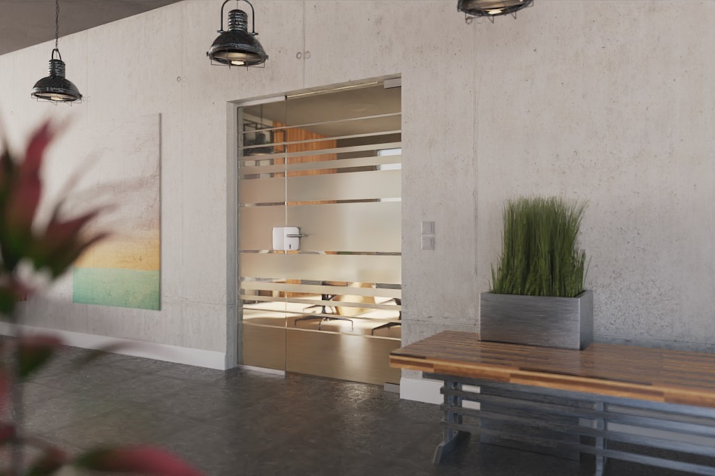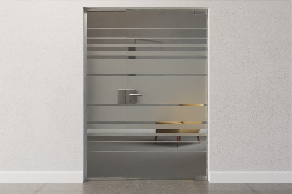 Trendy, całoszklane drzwi z boczną częścią z szkła bezpieczeństwa odpornego na brud: