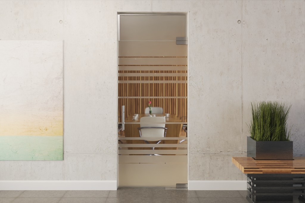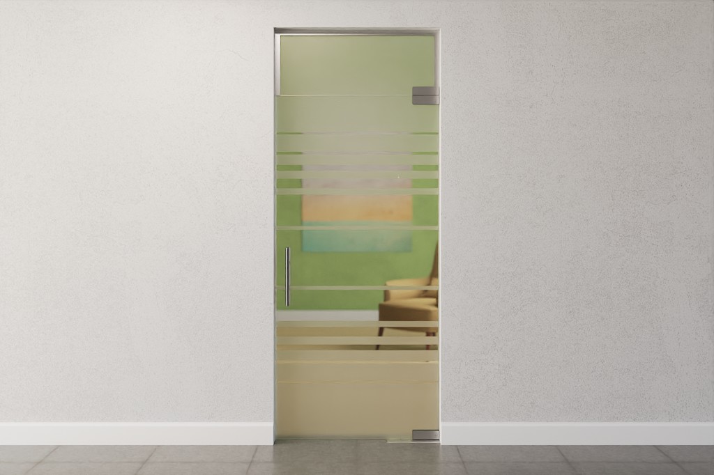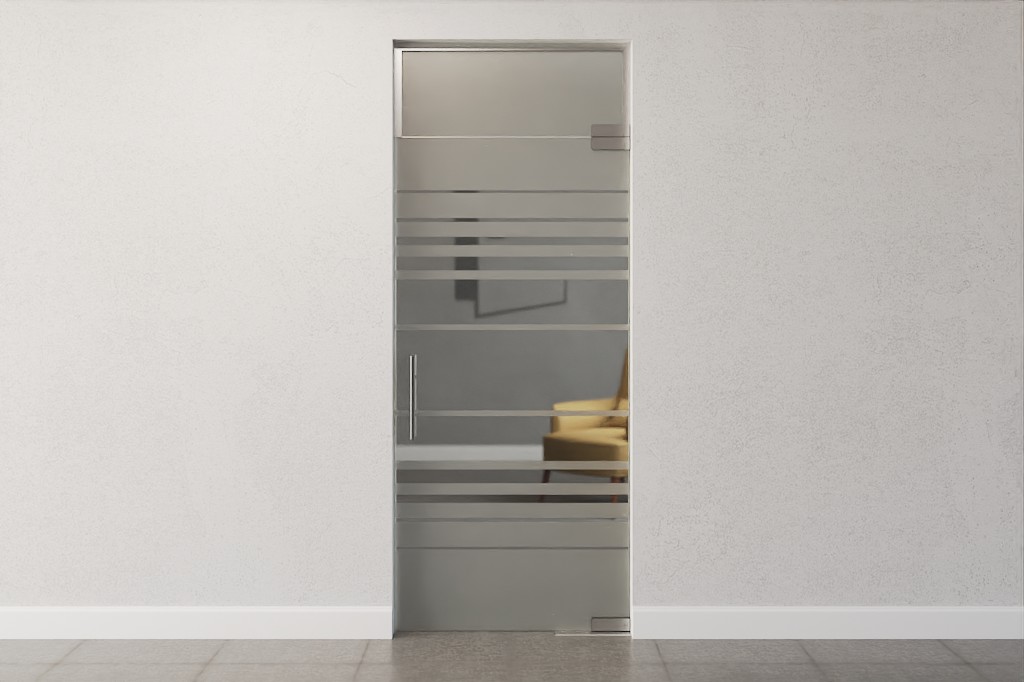 W niezawodna szklana konstrukcja z drzwiami wahadłowymi i świetlikiem, w tym markowe zawiasy drzwi wahadłowych DORMA Mundus: