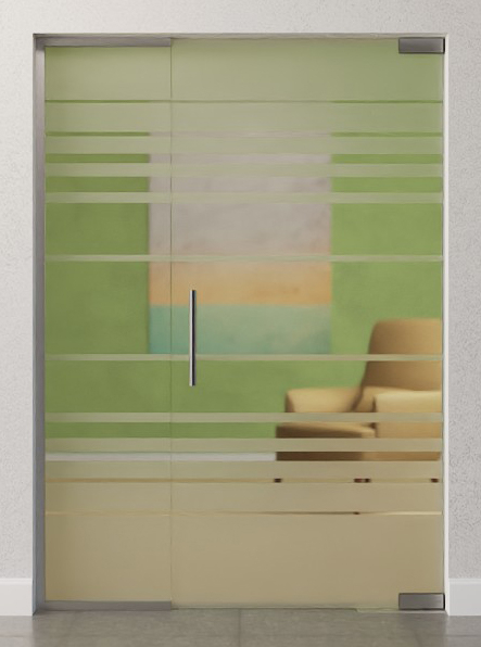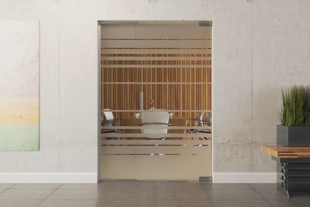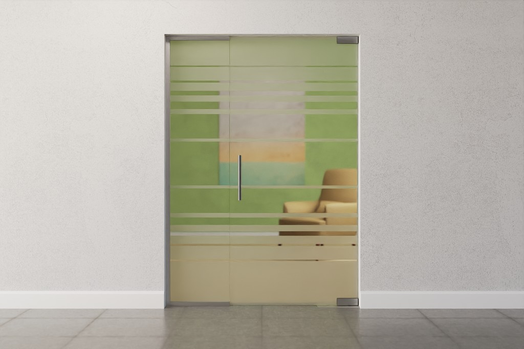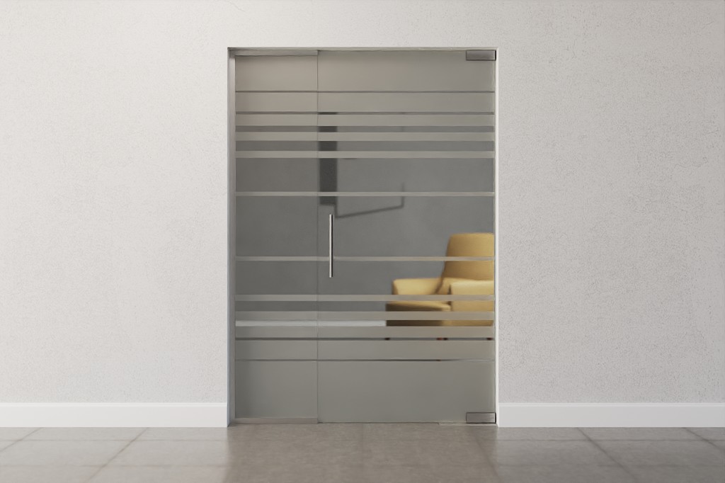 Zabudowę całoszklaną można skonfigurować w różnych wysokościach i szerokościach. Można również dokładnie określić szerokość skrzydła drzwiowego. Szerokość elementu bocznego wynika z całkowitej szerokości po odjęciu szerokości skrzydła drzwiowego.