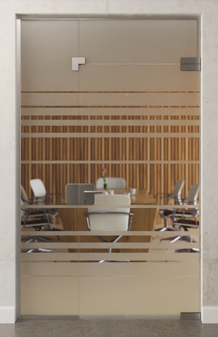 Stylowa drzwi szklane z bocznym panelem i świetlikiem z specjalnie pokrytego szkła hartowanego:
