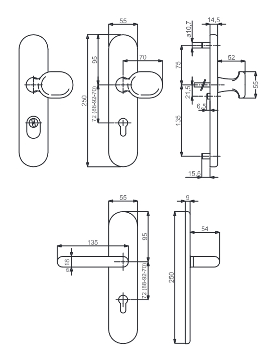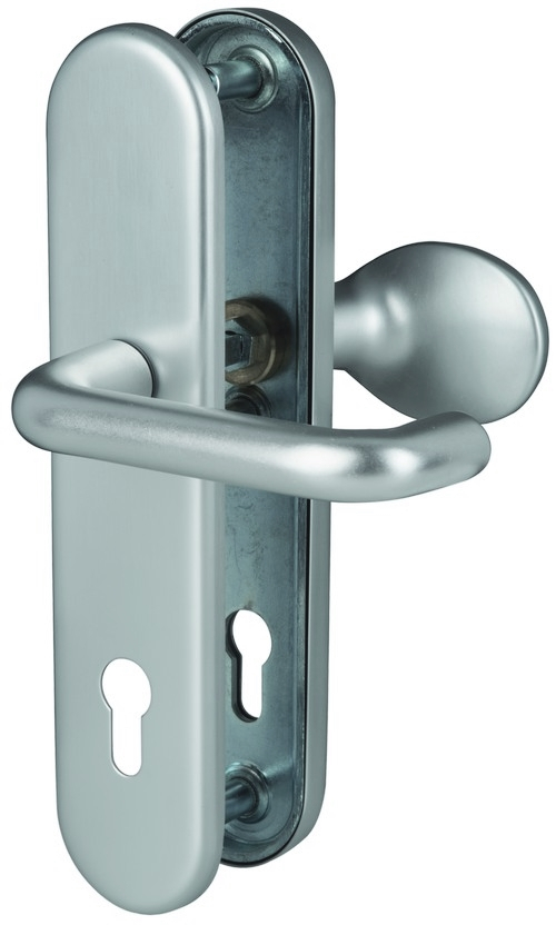 Model wykonany z aluminium dostępny jest w wersjach klamka/klamka lub klamka/płyta uchwytowa (stała). Owalna płyta uchwytowa i uchwyt w kształcie litery u harmonijnie współgrają z zaokrąglonym długim szyldem.