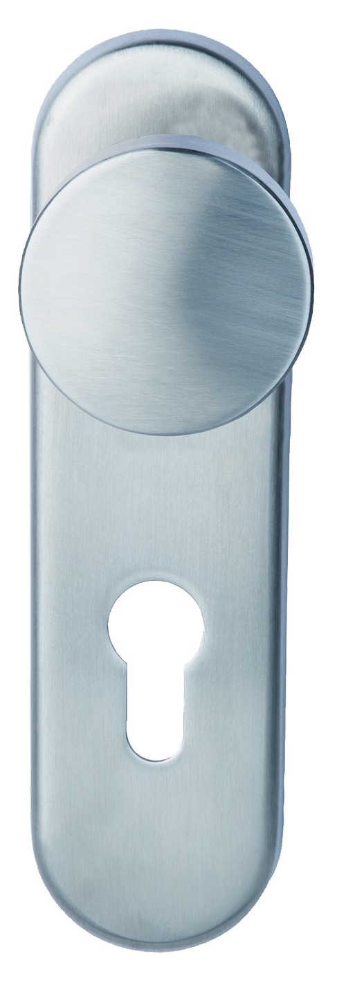 Aluminiowy zestaw można skonfigurować w wersji klamka/gałka (stała) lub klamka/klamka. Dzięki zredukowanemu designowi model prezentuje się minimalistycznie elegancko: Proste, bezpretensjonalne formy kształtują wygląd krótkiej tarczy, klamki i gałki.