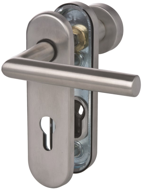 Cały zestaw wykonany jest z nierdzewnej, satynowanej stali. Dodatkowo oferujemy montaż wystającego cylindra, który chroni przed próbami włamania.