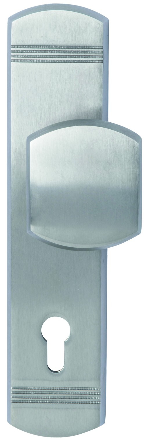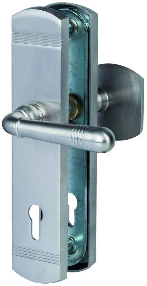 Elegancka zestaw do ochrony przeciwpożarowej dostępna jest w wariantach płyta uchwytowa/klamka oraz klamka/klamka. Delikatne frezowania i zakrzywione detale zdobią klamkę i długą tarczę. Matowa powłoka w kolorze stali nierdzewnej Robusta zachwyca również ogromną wytrzymałością i długowiecznością.