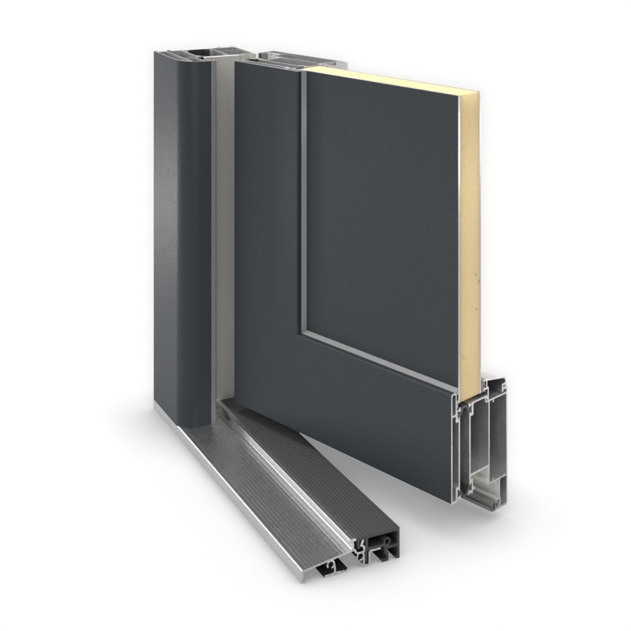 • Konstrukcja: Rama osłonowa z wielokomorowym profilem aluminiowym, termicznie oddzielona, nowoczesna zaokrąglona krawędź na zewnątrz, rama skrzydła z wielokomorowym profilem aluminiowym, termicznie oddzielona, wypełnienie typu sandwich 24 mm z izolacją termiczną z rdzeniem XPS i aluminiową powłoką, 2 poziomy uszczelnienia