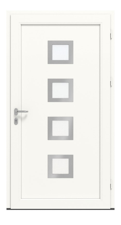 Innowacyjne drzwi wejściowe z tworzywa sztucznego z kwadratowymi wycięciami na szybę