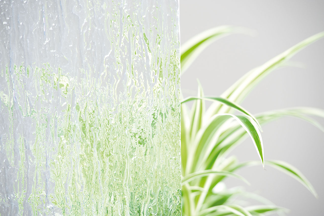 Aby uzyskać efektowne struktury szkła drzwiowego, stopiona masa szklana jest prowadzona przez dwa walce. Posiadają one specjalną strukturę, która następnie odwzorowuje się w szkle.