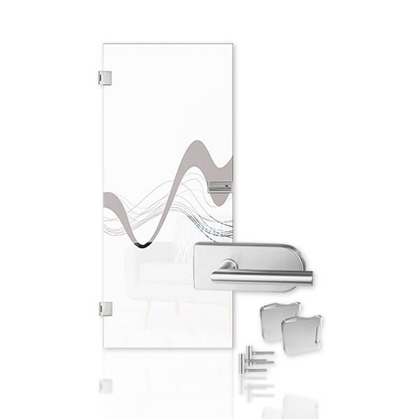 Niepokonany dreamteam: Dzięki naszemu kompletnemu zestawowi składającemu się z drzwi całkowicie szklanych Sinus 2 i pasującego zestawu okuć Gamma firmy Erkelenz możesz cieszyć się idealnie dopasowanym zestawem drzwiowym w okazyjnej cenie.