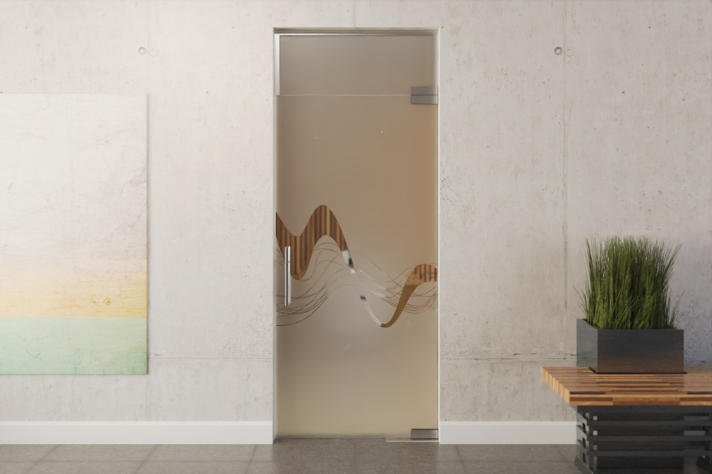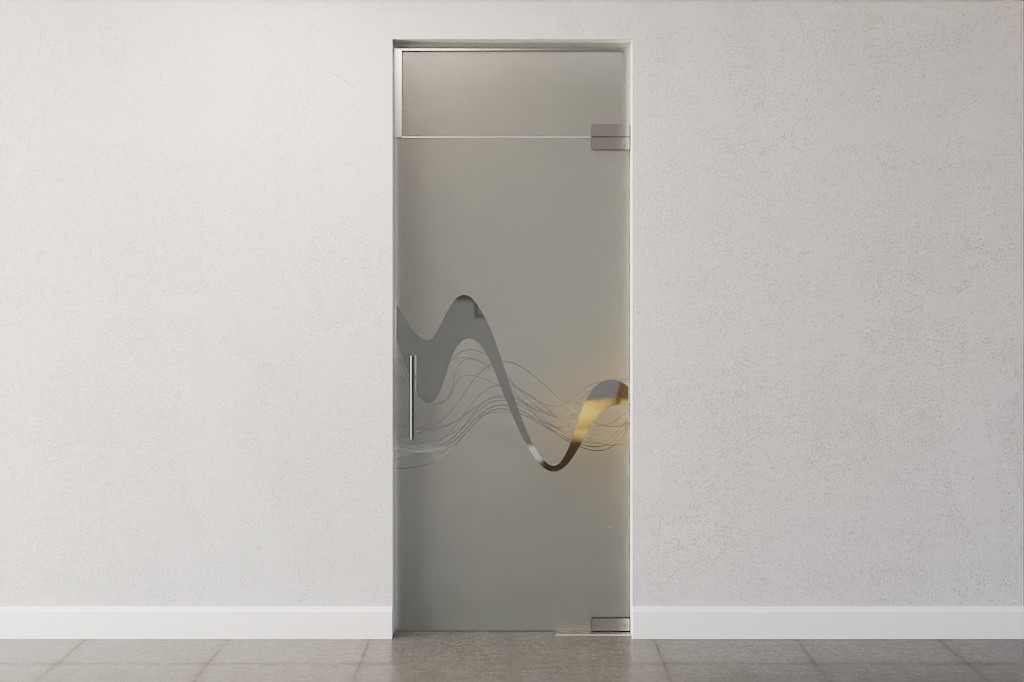 Modna całoszklana konstrukcja z drzwiami wahadłowymi i świetlikiem wykonana z wytrzymałego szkła bezpieczeństwa: