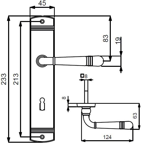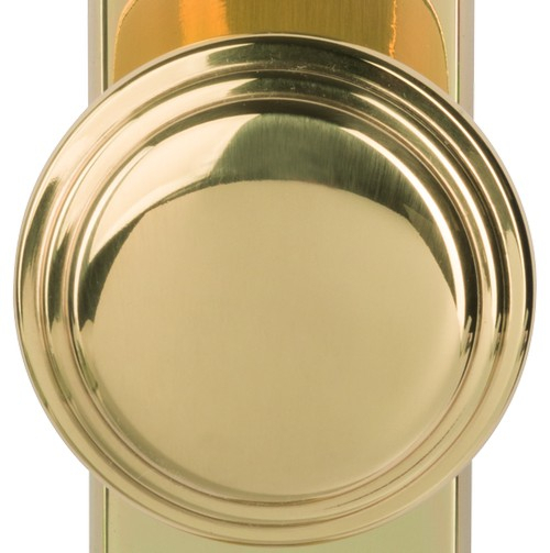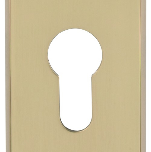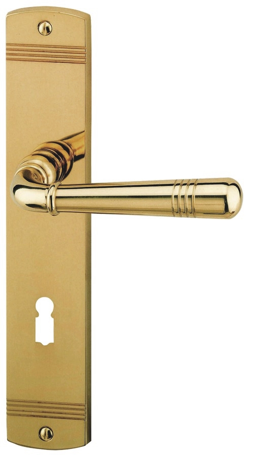 W eleganckim Robusta Gold model błyszczy zaokrągloną klamką po stronie wewnętrznej i okrągłym przyciskiem po stronie zewnętrznej. Subtelne linie biegną na końcach długiego szyldu i klamki. Zintegrowana sprężyna podtrzymująca zapewnia trwałe poziome ustawienie klamki.