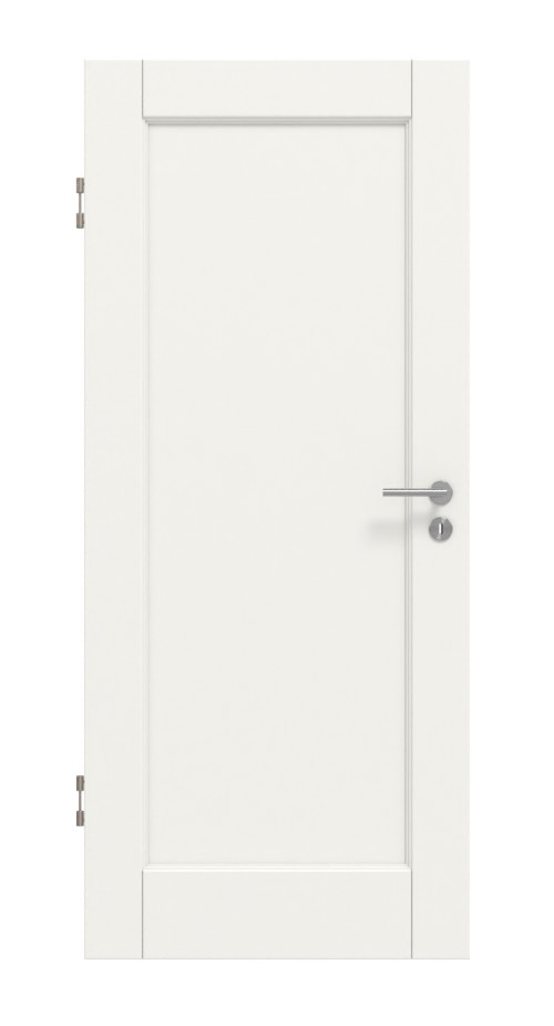 Na skrzydle drzwi znajduje się solidna rama, która wraz z gładkim wypełnieniem tworzy klasyczny wygląd kasetonowy. Biała powierzchnia lakierowana jest nakładana w kilku warstwach.