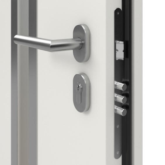 Oprócz stalowej ramy i progu podłogowego ze stali nierdzewnej, drzwi boczne mają skrzydło drzwiowe o grubości 68 mm wykonane z blachy stalowej , wypełnione potrójnym szkleniem oraz izolacyjnym styropianem i drewnem. Obwodowe uszczelki na ościeżnicy i skrzydle chronią przed ulewnym deszczem i zimnem oraz pomagają oszczędzać energię, zapobiegając powstawaniu mostków termicznych. Jeśli chodzi o bezpieczeństwo, wyposażenie drzwi uzupełniają dwa niezależne zamki z cylindrycznymi wkładkami o tym samym kluczu, trzy regulowane zawiasy oraz praktyczne zabezpieczenia przed podważeniem .