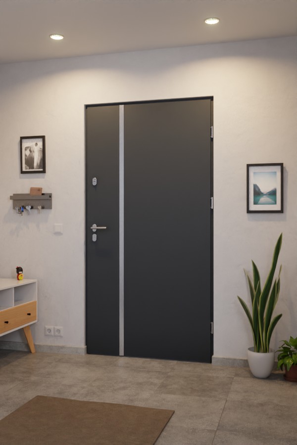 - Eleganckie drzwi zewnętrzne wykonane z wytrzymałej stali