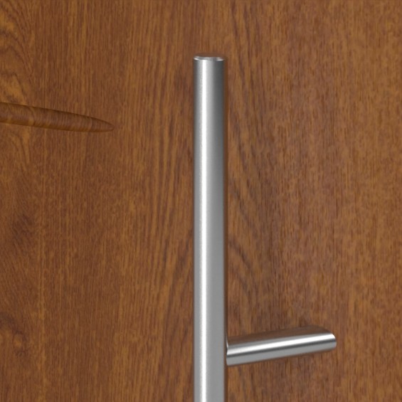 Cztery poziome frezowania zdobią środek skrzydła drzwiowego, które jest obustronnie pokrywającym skrzydło drzwi nakładkowych. Ich linearny styl harmonizuje z prostymi klamkami ze stali nierdzewnej, składającymi się z dwóch klamek w kształcie litery L i owalnych rozet, które wchodzą w skład standardowego wyposażenia modelu.