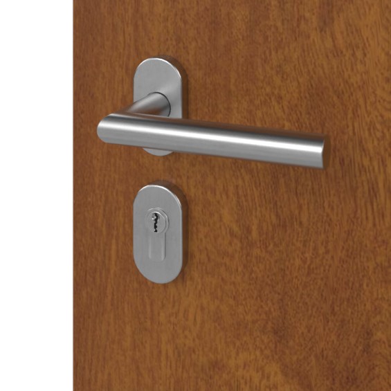 - wraz z zestawem klamek ze stali nierdzewnej z owalnymi rozetami