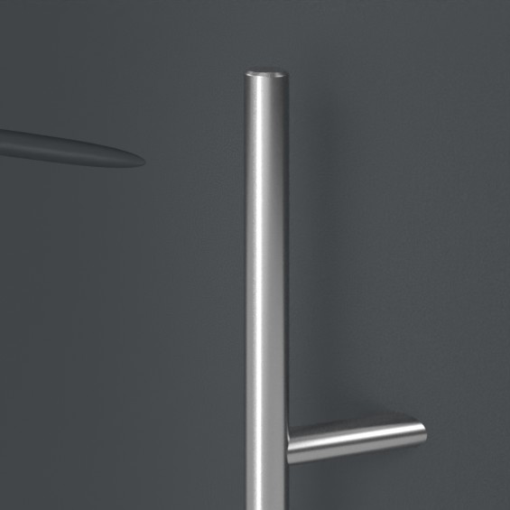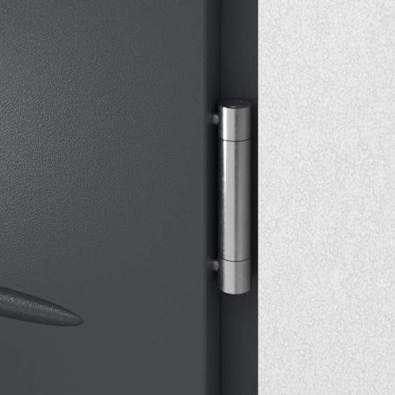 Cztery poziome frezowania zdobią środek skrzydła drzwiowego, które jest obustronnie pokrywającym skrzydło drzwi nakładkowych. Ich linearny styl harmonizuje z prostymi klamkami ze stali nierdzewnej, składającymi się z dwóch klamek w kształcie litery L i owalnych rozet, które wchodzą w skład standardowego wyposażenia modelu.