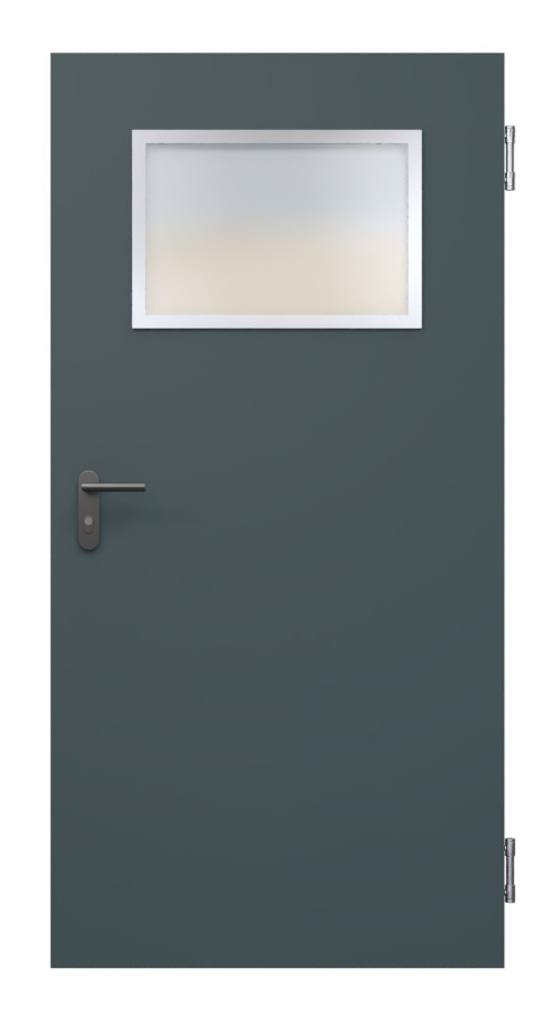 Skrzydło drzwiowe wykonane jest z wkładki z rdzeniem z płyty wiórowej, co przyczynia się do jego wytrzymałości. W wyposażeniu znajduje się zamek wielozadaniowy oraz ocynkowane górne zawiasy.