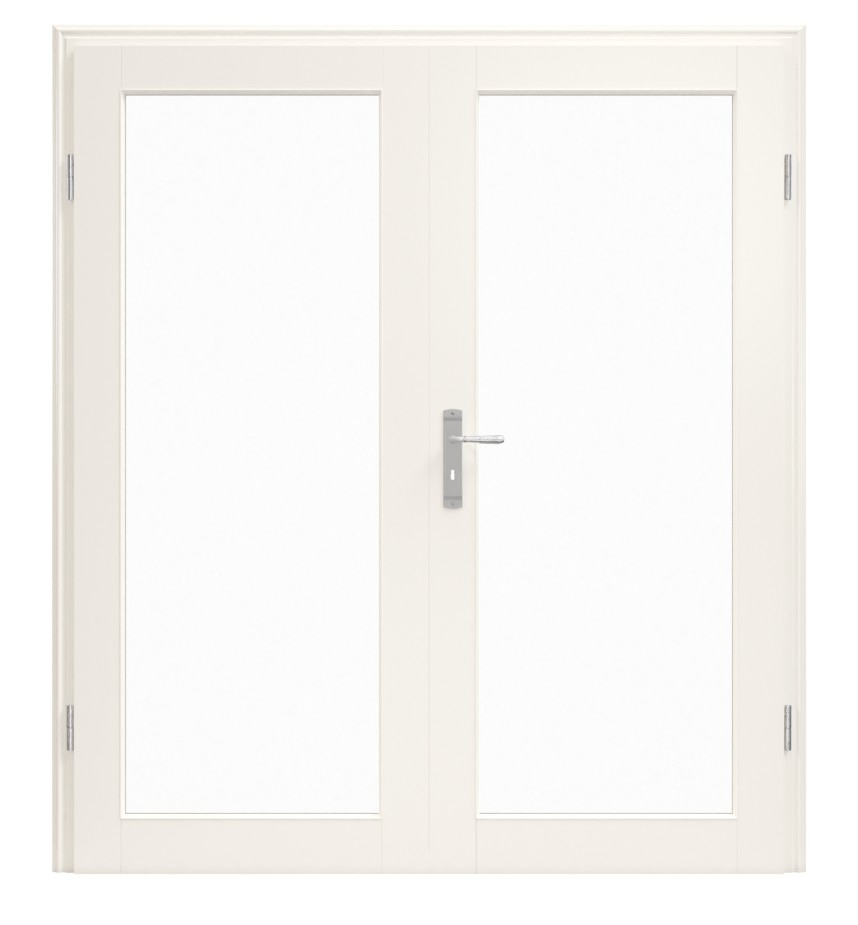 Ten białe lakierowane drzwi podwójne serii Stiba Plus od Jeld-Wen (w kolorze podobnym do RAL 9010 lub RAL 9016) zachwycają prostą elegancją.