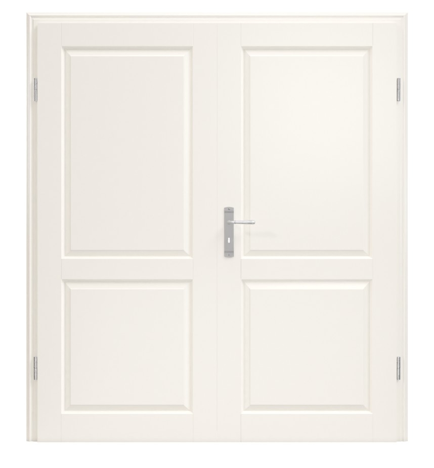 Wysokiej jakości lakierowane podwójne drzwi serii Stiba Plus od Jeld-Wen w kolorze białym (opcjonalnie odcień podobny do RAL 9010 lub podobny do RAL 9016) obiecują ponadczasową elegancję i nadają Twojemu domowi naturalny urok w stylu wiejskim.