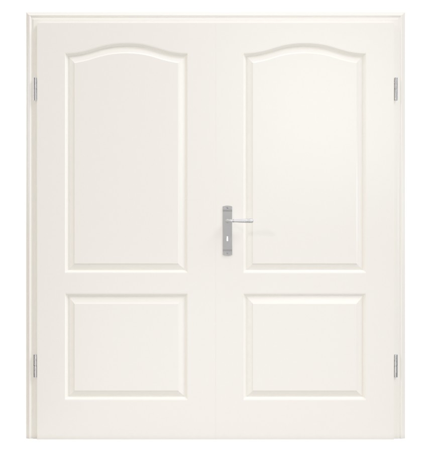 Wysokiej jakości lakierowane drzwi podwójne serii Stiba Plus od Jeld-Wen w kolorze białym (opcjonalnie odcień podobny do RAL 9010 lub podobny do RAL 9016) obiecują ponadczasową elegancję i nadają Państwa domowi naturalny urok w stylu wiejskim.