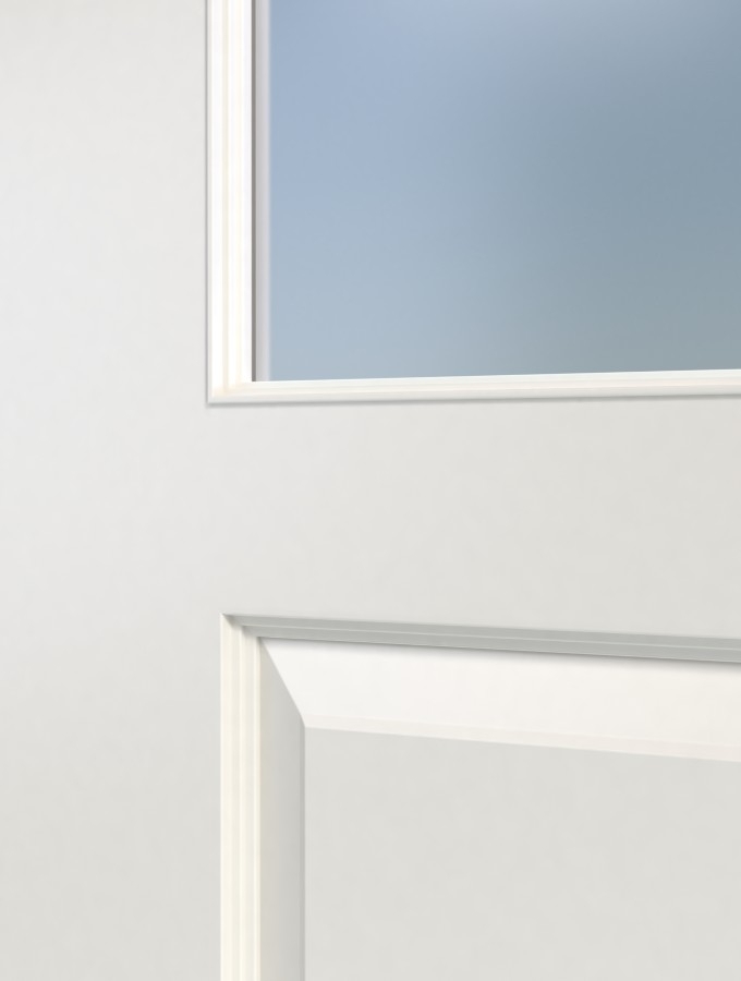 Dla solidnej stabilności odpowiada pełne wzmocnienie wewnątrz skrzydła drzwi. Powierzchnia jest wysokiej jakości pokryta białym lakierem. Formowane profile delikatnie otaczają szklany wycięcie z nałożonymi listwami szklanymi. Wąskie drewniane listwy nadają drzwiom wewnętrznym wyjątkowy charakter.