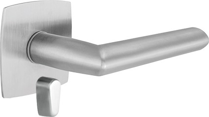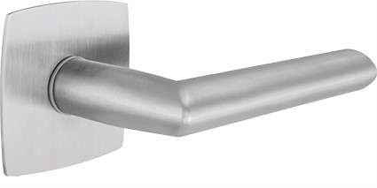 Prawie licowe rosety ze szczotkowanej stali nierdzewnej stanowią prostą bazę dla klamek, które również wykonane są ze stali nierdzewnej. Model ten w tej wersji jest bez zamka, ale może być opcjonalnie wykonany z rozetą na klucz PZ lub owalnym.