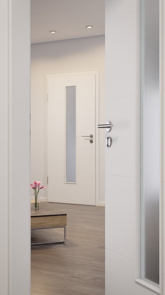 W ten sposób stworzysz interesujące akcenty: Z drzwiami wewnętrznymi Stripe 15 w białym RAL 9016 z LA 24 od Hörmann wprowadzisz do swojego domu spokojny element przyciągający wzrok.