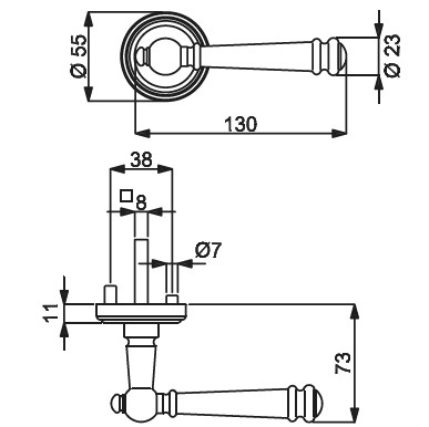 Uchwyt i okrągła rozetka zachwycają uroczymi zdobieniami i płynną, bezkrawędziową formą. Trwale obrotowo osadzona klamka zapewnia stabilne, bezwibracyjne mocowanie. Trwałe poziome utrzymanie zapewnia zintegrowana sprężyna podtrzymująca.