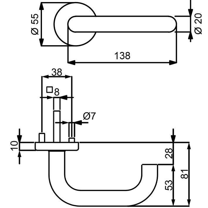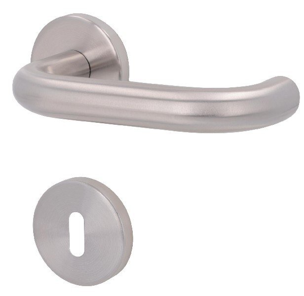 Na okrągłych rozetach obrotowych znajduje się U-kształtny uchwyt, który zachwyca swoim prostym designem. Zintegrowana sprężyna podtrzymująca niezawodnie zapewnia, że klamka zawsze pozostaje w poziomej pozycji.
